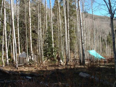 Our camp in an Aspen Grove near the trail. The smaller tent on the left is where Dan Kellogg and I slept.
