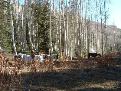 As the sun came up we were packing the horses. We were on the trail by 10:00 and a short 5 mile ride later we were setting up camp in an aspen grove. Dan’s friend, let’s call him the anti-christ, road one horse and towed 2. All 3 horses were green and not really trail ready. One good thing was he brought in a large wall tent.