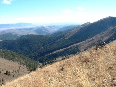 I took off on foot today hoping to cover a steep ridge not accessible by horse. I spotted Moose and Elk today and a few small bucks.