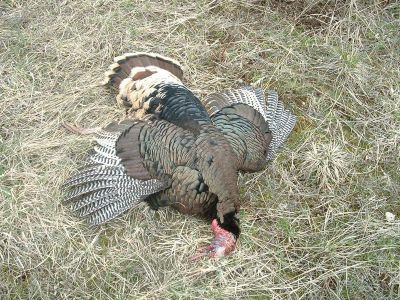 I snuck along the rim very slowly. About 75 yards after I left Daniel I spotted 2 Tom’s hunkered down in the brush at about 30 yards. I took careful aim and shot. The brush seemed to explode with turkeys running everywhere except for one that seemed to be tired. Maybe he was tired and wanting to lay down because of the extra lead he was carrying in his cranium. I crawled under the oak brush and pulled the turkey out. Daniel came around the corner with his gun pointed at me. Some say I could be mistaken for a turkey, I beg to differ. Daniel’s better judgment took hold and he decided to wait for a turkey of the wilder nature.