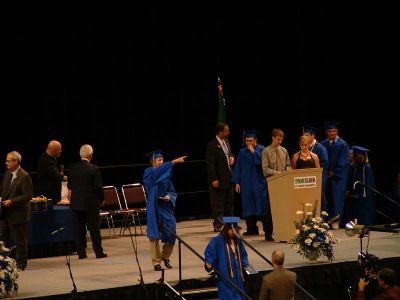 No, You Da Man! Dan after he recieved his diploma points to someone in the crowd.