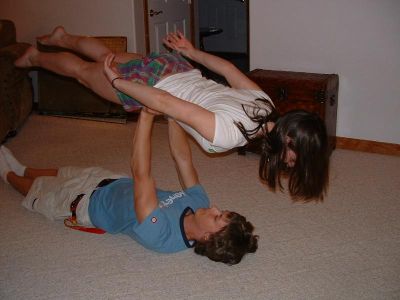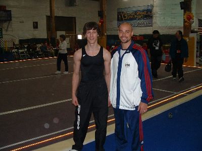 Dan at a gymnastics competion. He is pictured here with the Olympic silver medalist in the vault, Doug McClure.